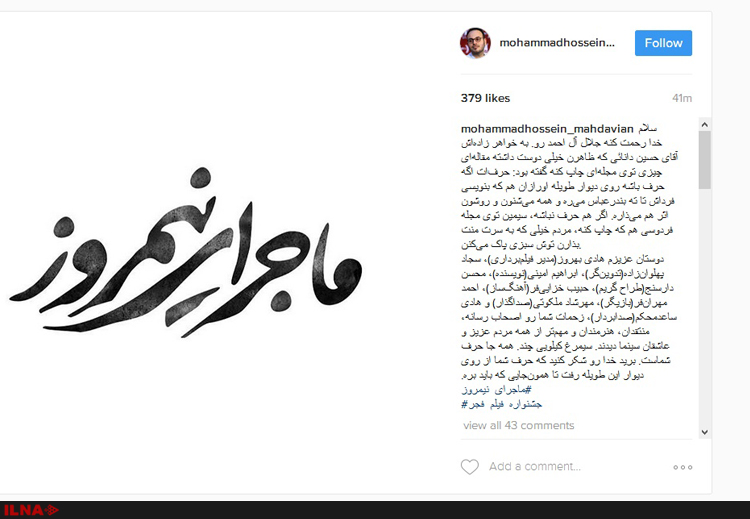 محمدحسین مهدویان در یادداشت بسیار تند و تاملبرانگیزش که در صفحه اینستاگرام خودش منتشر کرده؛ نوشته است: