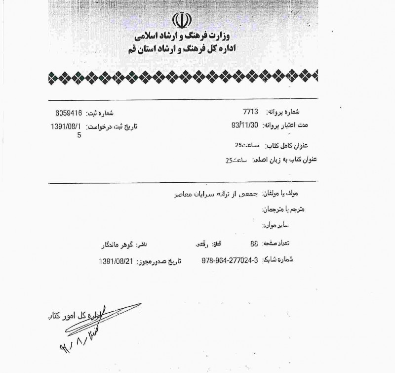 MOJAVVEZ-KETAB انتشار در ۹ آذر ۱۳۹۱ در مجوز کتاب «ساعت ۲۵» صادر شد..تمام صفحه (800 × 755) → قبلی بعدی ←